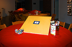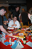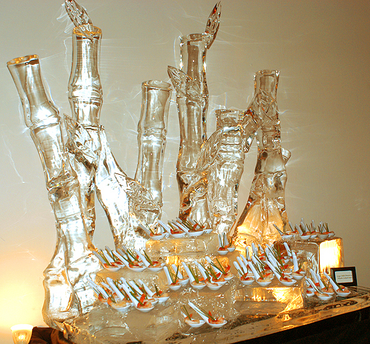 the audience while a live jazz band played on.