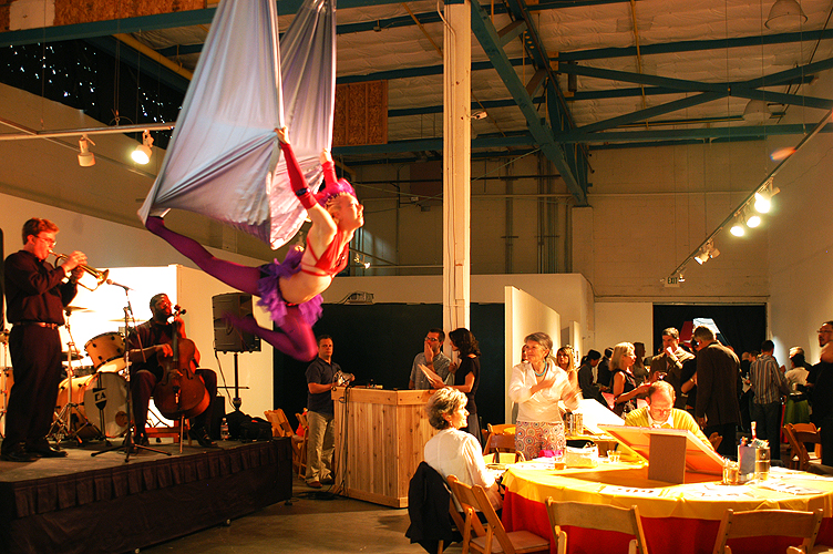 evening was highlighted by a suspended trapeze artist performing above