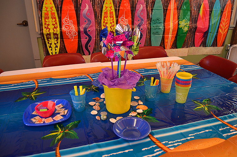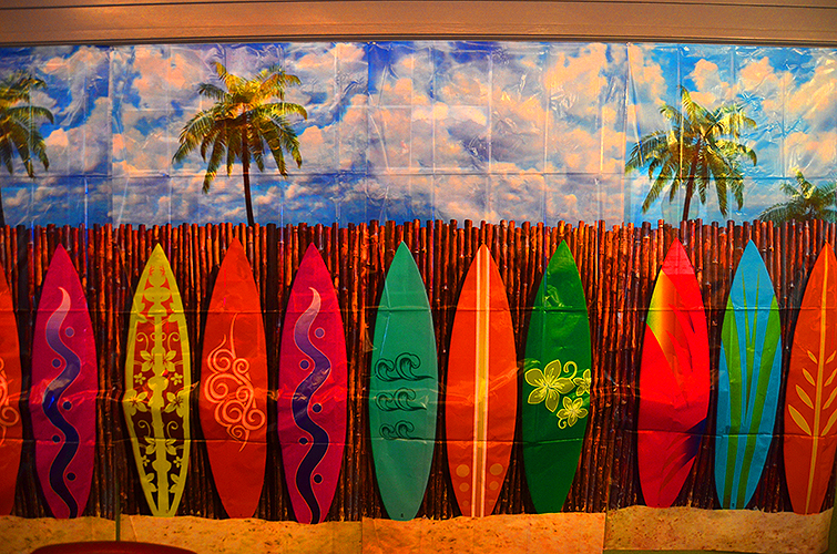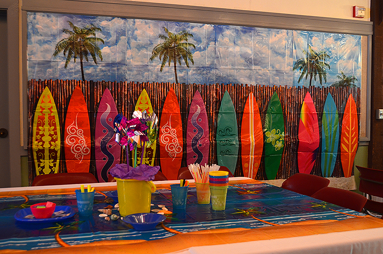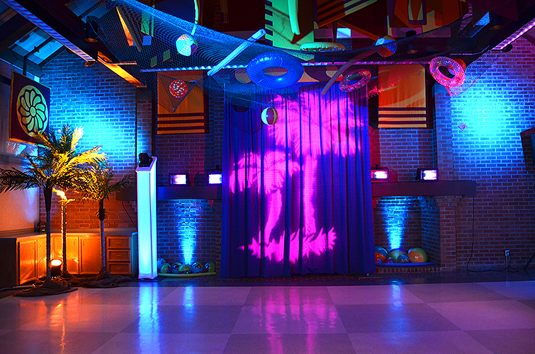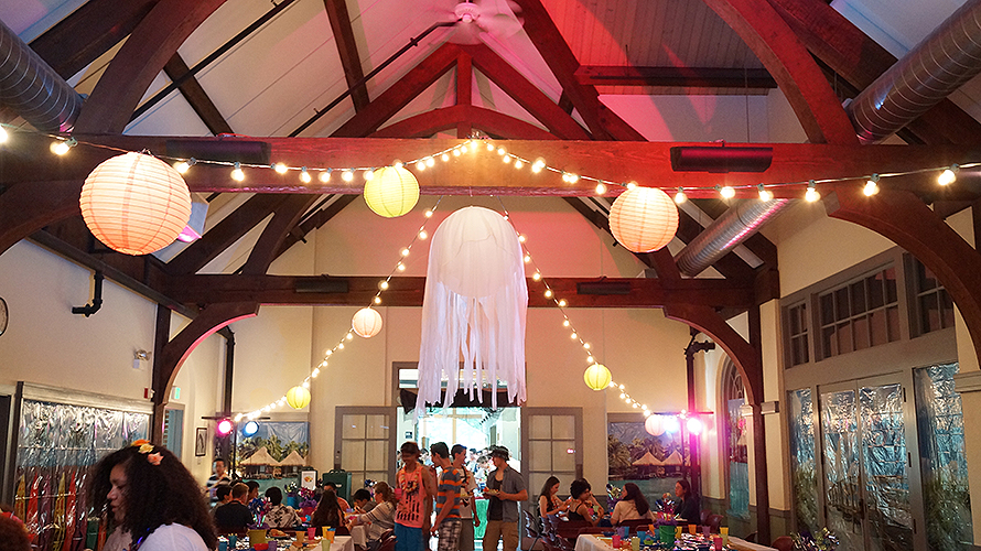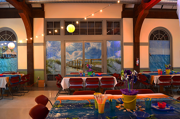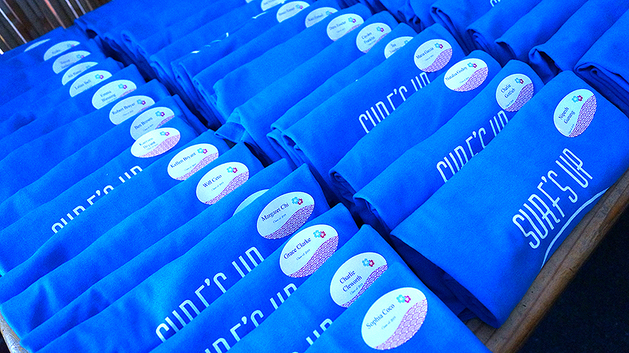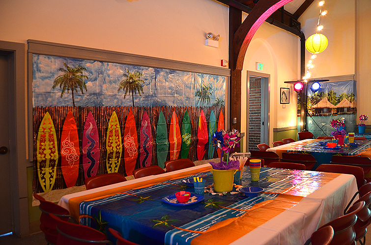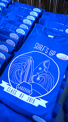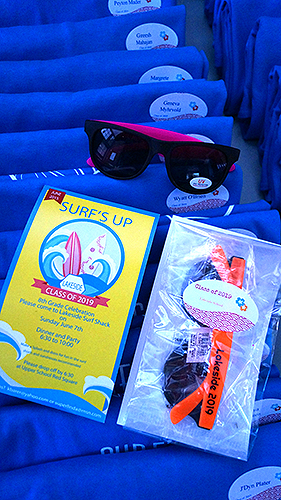 Lakeside School, a private/independent school located in the Haller Lake neighborhood of Seattle for grades 5-12. We were so happy to get the call to help design their eighth grade graduation party. Starting with a Surfin' theme, our design team created custom designed invitations and t-shirts for each student. Then we were excited for the transformation, setting up for a memorable beach party celebration, Surf's Up!