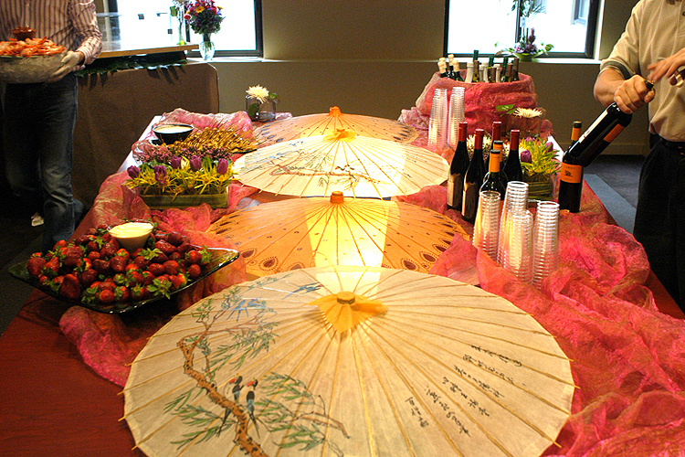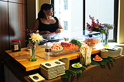 Kwanchai joined a local Sushi Chef for this open house in the Medical Dental Building. Our client who is an anesthesiologist wanted to have an intimate event for her special clients. Jonathan was there to create the tablescape and custom floral arrangements to lay the foundation for this asian inspired menu. Guest enjoyed creative sushi rolls and assortment of fresh seasonal sashimi. Collaborating on a feast to be served with wine and sake, not a bad gig!