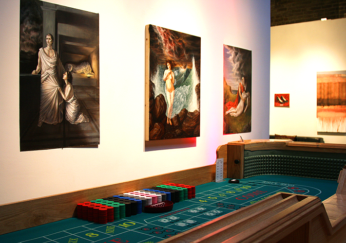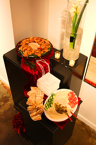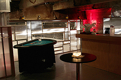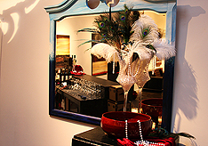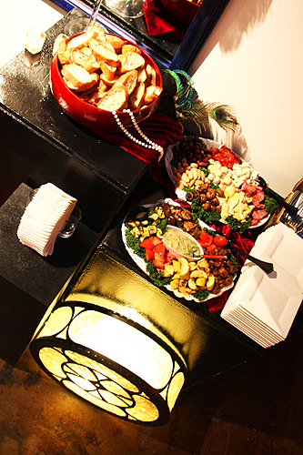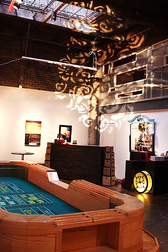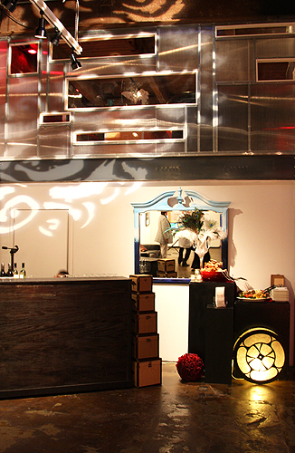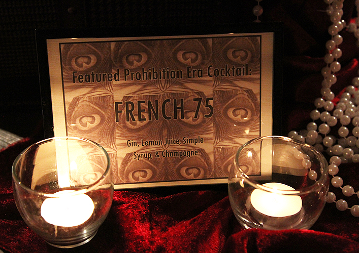 Guests arrive to a nondescript door which opened to an unexpectedly beautiful gallery. KWANCHAI transformed this blank slate into luxurious quarters befit of the 1920s to draw party-goers into an exuberant night of sipping, nibbling, gambling and dancing. Feathers, fancy hats and French 75's abounded!