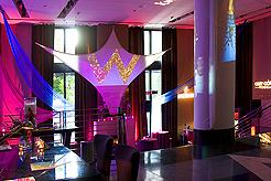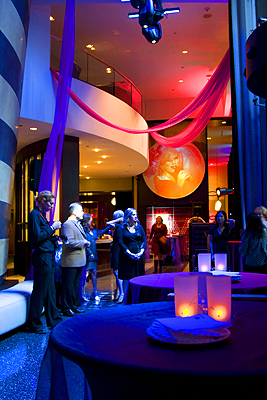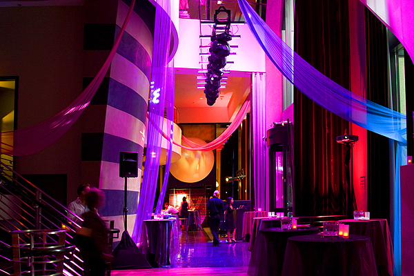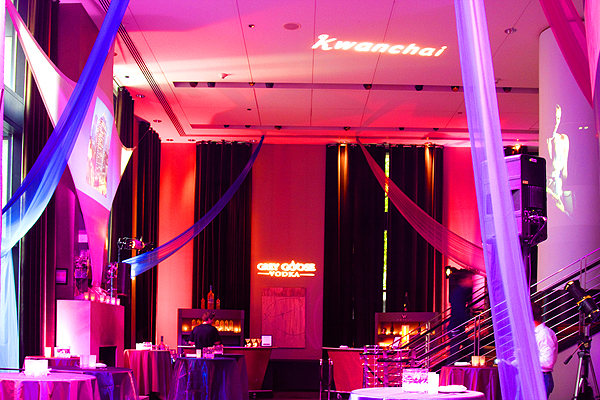W Seattle celebrated it's 10th Anniversary with a fabulous Film, Fashion & Music soiree! KWANCHAI inspiration provided the key design elements for this grand event, from Hollywood-inspired lighting and futuristic projection screens to soaring fabric panels and sparkling, bejeweled centerpieces.