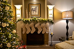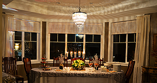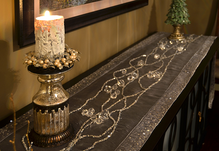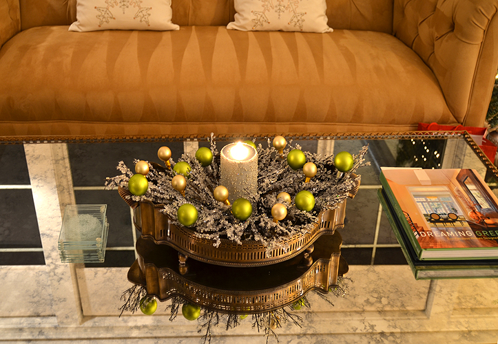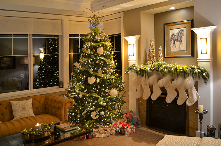 A showcase of holiday cheer featuring dramatic exterior snowflake lighting and interior festive decor carried the Sparkle and Delight theme through the entire home.
