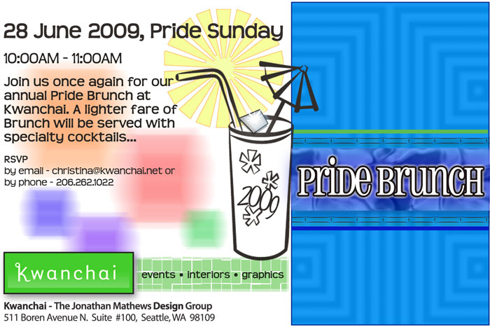 To Our Invited Guests & Friends: Kwanchai is pleased to host the Annual Pride Brunch at our office space in South Lake Union. Join us from 10:00AM - 11:00AM on 28 June 2009, Pride Sunday, in preparation for the parade festivities with brunch bites and specialty cocktails.