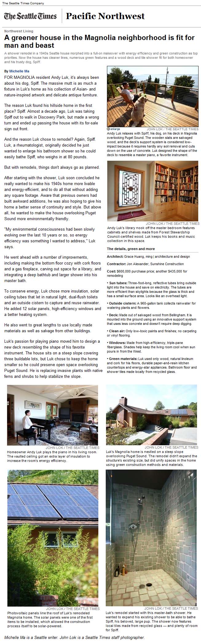 featured in the Seattle Times. Working closely with the client, lead designer Jonathan Mathews